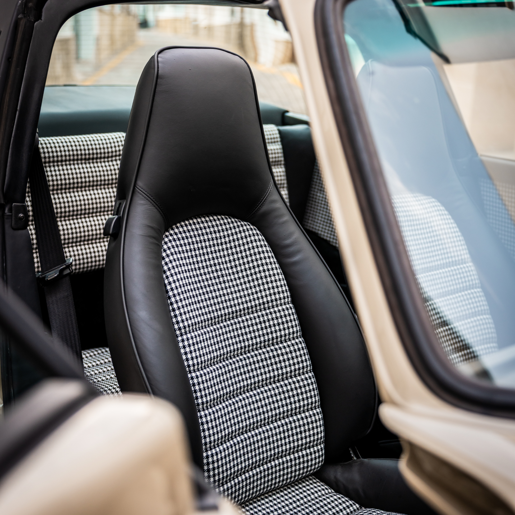The 1988 Porsche 911 3.2 Carrera Targa features a stunning Stone Grey exterior paired with a heritage cloth interior, reflecting classic elegance. Fully restored, this model boasts an uprated engine and a stainless steel exhaust, enhancing performance and sound. Ideal for enthusiasts seeking a blend of vintage style and modern reliability.